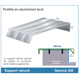 Largeur : 200mm (couvre max. 160mm de mur); MATIÈRE : Aluminium Prélaqué 15/10; Aluminium Prélaqué 10/10; Acier Prélaqué 75/100; LONGUEUR : 3 longueurs à choisir
