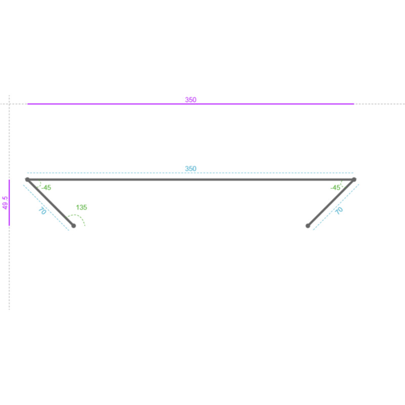 Segment 1 Largeur : 70 mm Segment 2 Largeur : 350 mm Angle : -45 ° Poinçonnage 1( U 1 ) : Type : Rond - 7.10 Longueur : 7.1 mm Largeur : 7.1 mm Position X (au centre) : 33 mm Position Y (au centre) : 475 mm Rotation : 0 ° Position X Absolue avec perte au pli (au centre) : 102.4 mm Position Y Absolue avec perte au pli (au centre) : 475 mm Poinçonnage 2( U 2 ) : Type : Rond - 7.10 Longueur : 7.1 mm Largeur : 7.1 mm Position X (au centre) : 33 mm Position Y (au centre) : 1275 mm Rotation : 0 ° Position X Absolue avec perte au pli (au centre) : 102.4 mm Position Y Absolue avec perte au pli (au centre) : 1275 mm Poinçonnage 3( U 3 ) : Type : Rond - 7.10 Longueur : 7.1 mm Largeur : 7.1 mm Position X (au centre) : 33 mm Position Y (au centre) : 1675 mm Rotation : 0 ° Position X Absolue avec perte au pli (au centre) : 102.4 mm Position Y Absolue avec perte au pli (au centre) : 1675 mm Poinçonnage 4( U 4 ) : Type : Rond - 7.10 Longueur : 7.1 mm Largeur : 7.1 mm Position X (au centre) : 317 mm Position Y (au centre) : 475 mm Rotation : 0 ° Position X Absolue avec perte au pli (au centre) : 386.4 mm Position Y Absolue avec perte au pli (au centre) : 475 mm Poinçonnage 5( U 5 ) : Type : Rond - 7.10 Longueur : 7.1 mm Largeur : 7.1 mm Position X (au centre) : 317 mm Position Y (au centre) : 875 mm Rotation : 0 ° Position X Absolue avec perte au pli (au centre) : 386.4 mm Position Y Absolue avec perte au pli (au centre) : 875 mm Poinçonnage 6( U 6 ) : Type : Rond - 7.10 Longueur : 7.1 mm Largeur : 7.1 mm Position X (au centre) : 317 mm Position Y (au centre) : 1275 mm Rotation : 0 ° Position X Absolue avec perte au pli (au centre) : 386.4 mm Position Y Absolue avec perte au pli (au centre) : 1275 mm Poinçonnage 7( U 7 ) : Type : Rond - 7.10 Longueur : 7.1 mm Largeur : 7.1 mm Position X (au centre) : 317 mm Position Y (au centre) : 1675 mm Rotation : 0 ° Position X Absolue avec perte au pli (au centre) : 386.4 mm Position Y Absolue avec perte au pli (au centre) : 1675 mm Poinçonnage 8( U 8 ) : Type : Rond - 7.10 Longueur : 7.1 mm Largeur : 7.1 mm Position X (au centre) : 33 mm Position Y (au centre) : 875 mm Rotation : 0 ° Position X Absolue avec perte au pli (au centre) : 102.4 mm Position Y Absolue avec perte au pli (au centre) : 875 mm Poinçonnage 9( U 9 ) : Type : Rond - 7.10 Longueur : 7.1 mm Largeur : 7.1 mm Position X (au centre) : 18 mm Position Y (au centre) : 430 mm Rotation : 0 ° Position X Absolue avec perte au pli (au centre) : 87.4 mm Position Y Absolue avec perte au pli (au centre) : 430 mm Poinçonnage 10( U 10 ) : Type : Rond - 7.10 Longueur : 7.1 mm Largeur : 7.1 mm Position X (au centre) : 18 mm Position Y (au centre) : 1075 mm Rotation : 0 ° Position X Absolue avec perte au pli (au centre) : 87.4 mm Position Y Absolue avec perte au pli (au centre) : 1075 mm Poinçonnage 11( U 11 ) : Type : Rond - 7.10 Longueur : 7.1 mm Largeur : 7.1 mm Position X (au centre) : 18 mm Position Y (au centre) : 1075 mm Rotation : 0 ° Position X Absolue avec perte au pli (au centre) : 87.4 mm Position Y Absolue avec perte au pli (au centre) : 1075 mm Poinçonnage 12( U 12 ) : Type : Rond - 7.10 Longueur : 7.1 mm Largeur : 7.1 mm Position X (au centre) : 18 mm Position Y (au centre) : 1075 mm Rotation : 0 ° Position X Absolue avec perte au pli (au centre) : 87.4 mm Position Y Absolue avec perte au pli (au centre) : 1075 mm Poinçonnage 13( U 13 ) : Type : Rond - 7.10 Longueur : 7.1 mm Largeur : 7.1 mm Position X (au centre) : 18 mm Position Y (au centre) : 1720 mm Rotation : 0 ° Position X Absolue avec perte au pli (au centre) : 87.4 mm Position Y Absolue avec perte au pli (au centre) : 1720 mm Poinçonnage 14( U 14 ) : Type : Rond - 7.10 Longueur : 7.1 mm Largeur : 7.1 mm Position X (au centre) : 332 mm Position Y (au centre) : 430 mm Rotation : 0 ° Position X Absolue avec perte au pli (au centre) : 401.4 mm Position Y Absolue avec perte au pli (au centre) : 430 mm Poinçonnage 15( U 15 ) : Type : Rond - 7.10 Longueur : 7.1 mm Largeur : 7.1 mm Position X (au centre) : 332 mm Position Y (au centre) : 1075 mm Rotation : 0 ° Position X Absolue avec perte au pli (au centre) : 401.4 mm Position Y Absolue avec perte au pli (au centre) : 1075 mm Poinçonnage 16( U 16 ) : Type : Rond - 7.10 Longueur : 7.1 mm Largeur : 7.1 mm Position X (au centre) : 332 mm Position Y (au centre) : 1075 mm Rotation : 0 ° Position X Absolue avec perte au pli (au centre) : 401.4 mm Position Y Absolue avec perte au pli (au centre) : 1075 mm Poinçonnage 17( U 17 ) : Type : Rond - 7.10 Longueur : 7.1 mm Largeur : 7.1 mm Position X (au centre) : 332 mm Position Y (au centre) : 1075 mm Rotation : 0 ° Position X Absolue avec perte au pli (au centre) : 401.4 mm Position Y Absolue avec perte au pli (au centre) : 1075 mm Poinçonnage 18( U 18 ) : Type : Rond - 7.10 Longueur : 7.1 mm Largeur : 7.1 mm Position X (au centre) : 332 mm Position Y (au centre) : 1720 mm Rotation : 0 ° Position X Absolue avec perte au pli (au centre) : 401.4 mm Position Y Absolue avec perte au pli (au centre) : 1720 mm Poinçonnage 19( U 19 ) : Type : Rond - 7.10 Longueur : 7.1 mm Largeur : 7.1 mm Position X (au centre) : 175 mm Position Y (au centre) : 1075 mm Rotation : 0 ° Position X Absolue avec perte au pli (au centre) : 244.4 mm Position Y Absolue avec perte au pli (au centre) : 1075 mm Découpe 1( D 1 ) : Longueur : 1250 mm Largeur : 250 mm Position X (en haut à gauche) : 50 mm Position Y (en haut à gauche) : 450 mm Position X Absolue (en haut à gauche) : 119.4 mm Position Y Absolue (en haut à gauche) : 450 mm Segment 3 Largeur : 70 mm Angle : -45 °