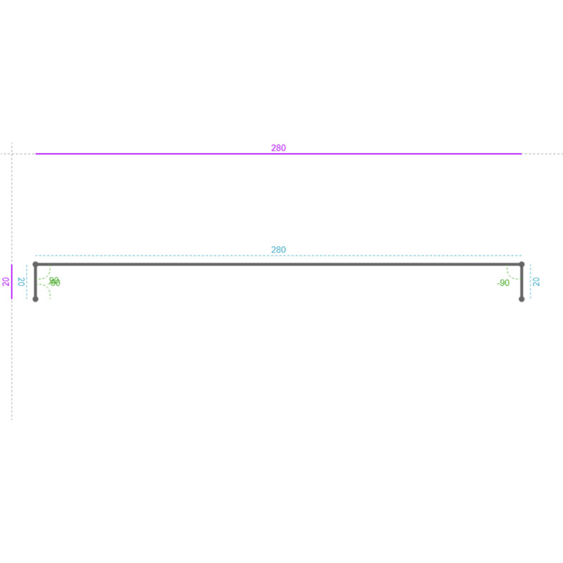 -90 ° 20 mm 280 mm Derrière 0 mm