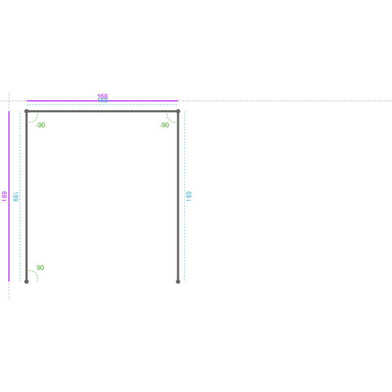 Segment 1 Largeur : 189 mm Découpe 1( D 1 ) : Longueur : 292 mm Largeur : 57 mm Position X (en haut à gauche) : 0 mm Position Y (en haut à gauche) : 0.5 mm Position X Absolue (en haut à gauche) : 0 mm Position Y Absolue (en haut à gauche) : 0.5 mm Découpe 2( D 2 ) : Longueur : 80 mm Largeur : 13 mm Position X (en haut à gauche) : 95 mm Position Y (en haut à gauche) : 40.5 mm Position X Absolue (en haut à gauche) : 95 mm Position Y Absolue (en haut à gauche) : 40.5 mm Découpe 3( D 3 ) : Longueur : 40 mm Largeur : 52 mm Position X (en haut à gauche) : 137 mm Position Y (en haut à gauche) : 0 mm Position X Absolue (en haut à gauche) : 137 mm Position Y Absolue (en haut à gauche) : 0 mm Découpe 4( D 4 ) : Longueur : 110 mm Largeur : 57 mm Position X (en haut à gauche) : 0 mm Position Y (en haut à gauche) : 407 mm Position X Absolue (en haut à gauche) : 0 mm Position Y Absolue (en haut à gauche) : 407 mm Découpe 5( D 5 ) : Longueur : 120 mm Largeur : 57 mm Position X (en haut à gauche) : 0 mm Position Y (en haut à gauche) : 632 mm Position X Absolue (en haut à gauche) : 0 mm Position Y Absolue (en haut à gauche) : 632 mm Découpe 6( D 6 ) : Longueur : 114 mm Largeur : 57 mm Position X (en haut à gauche) : 0 mm Position Y (en haut à gauche) : 866 mm Position X Absolue (en haut à gauche) : 0 mm Position Y Absolue (en haut à gauche) : 866 mm Découpe 7( D 7 ) : Longueur : 151 mm Largeur : 15 mm Position X (en haut à gauche) : 0 mm Position Y (en haut à gauche) : 1072 mm Position X Absolue (en haut à gauche) : 0 mm Position Y Absolue (en haut à gauche) : 1072 mm Segment 2 Largeur : 168 mm Angle : -90 ° Découpe 1( D 8 ) : Longueur : 40 mm Largeur : 168 mm Position X (en haut à gauche) : 0 mm Position Y (en haut à gauche) : 0 mm Position X Absolue (en haut à gauche) : 178.5 mm Position Y Absolue (en haut à gauche) : 0 mm Découpe 2( D 9 ) : Longueur : 220 mm Largeur : 86 mm Position X (en haut à gauche) : 40 mm Position Y (en haut à gauche) : 40 mm Position X Absolue (en haut à gauche) : 218.5 mm Position Y Absolue (en haut à gauche) : 40 mm Découpe 3( D 10 ) : Longueur : 100 mm Largeur : 168 mm Position X (en haut à gauche) : 0 mm Position Y (en haut à gauche) : 1123 mm Position X Absolue (en haut à gauche) : 178.5 mm Position Y Absolue (en haut à gauche) : 1123 mm Segment 3 Largeur : 189 mm Angle : -90 ° Découpe 1( D 11 ) : Longueur : 292 mm Largeur : 57 mm Position X (en haut à gauche) : 132 mm Position Y (en haut à gauche) : 0 mm Position X Absolue (en haut à gauche) : 468 mm Position Y Absolue (en haut à gauche) : 0 mm Découpe 2( D 12 ) : Longueur : 80 mm Largeur : 13 mm Position X (en haut à gauche) : 81 mm Position Y (en haut à gauche) : 40 mm Position X Absolue (en haut à gauche) : 417 mm Position Y Absolue (en haut à gauche) : 40 mm Découpe 3( D 13 ) : Longueur : 40 mm Largeur : 52 mm Position X (en haut à gauche) : 0 mm Position Y (en haut à gauche) : 0 mm Position X Absolue (en haut à gauche) : 336 mm Position Y Absolue (en haut à gauche) : 0 mm Découpe 4( D 14 ) : Longueur : 110 mm Largeur : 57 mm Position X (en haut à gauche) : 132 mm Position Y (en haut à gauche) : 407 mm Position X Absolue (en haut à gauche) : 468 mm Position Y Absolue (en haut à gauche) : 407 mm Découpe 5( D 15 ) : Longueur : 120 mm Largeur : 57 mm Position X (en haut à gauche) : 132 mm Position Y (en haut à gauche) : 632 mm Position X Absolue (en haut à gauche) : 468 mm Position Y Absolue (en haut à gauche) : 632 mm Découpe 6( D 16 ) : Longueur : 114 mm Largeur : 57 mm Position X (en haut à gauche) : 132 mm Position Y (en haut à gauche) : 866 mm Position X Absolue (en haut à gauche) : 468 mm Position Y Absolue (en haut à gauche) : 866 mm Découpe 7( D 17 ) : Longueur : 151 mm Largeur : 15 mm Position X (en haut à gauche) : 0 mm Position Y (en haut à gauche) : 0 mm Position X Absolue (en haut à gauche) : 336 mm Position Y Absolue (en haut à gauche) : 0 mm Découpe 8( D 18 ) : Longueur : 151 mm Largeur : 15 mm Position X (en haut à gauche) : 174 mm Position Y (en haut à gauche) : 1072 mm Position X Absolue (en haut à gauche) : 510 mm Position Y Absolue (en haut à gauche) : 1072 mm