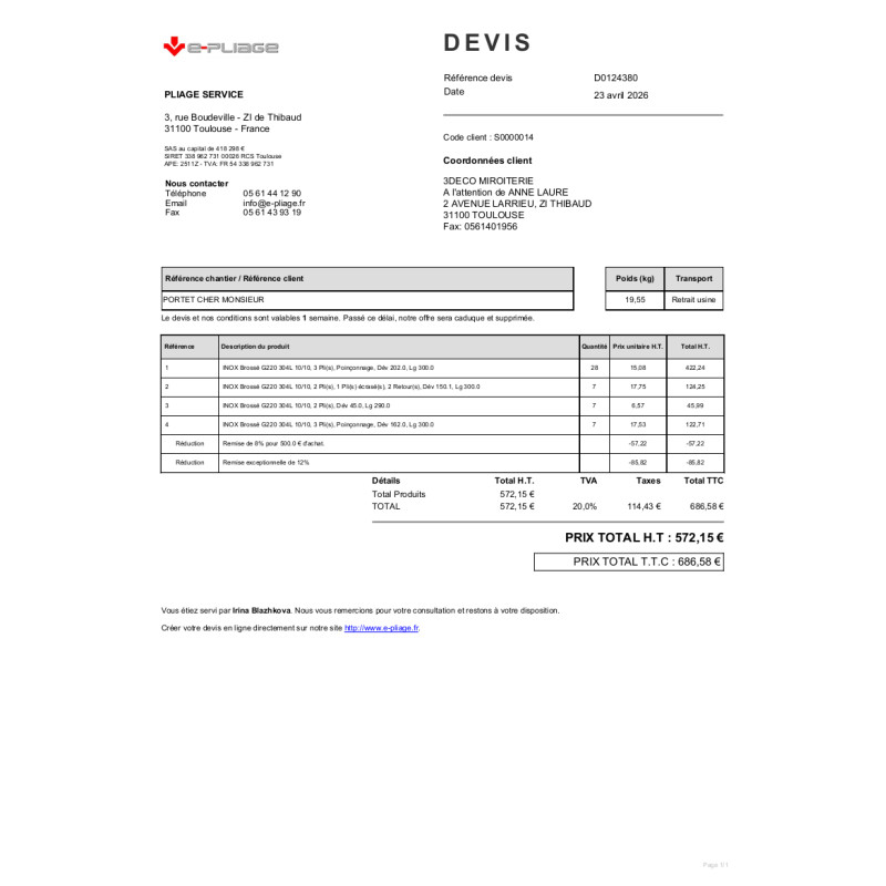 MATIÈRE : GalvaFINITION : GALVAÉPAISSEUR : 40/10QUANTITÉ : 1