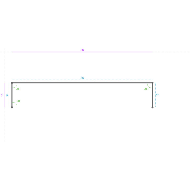 -90 ° 15 mm 86 mm Devant 0 mm