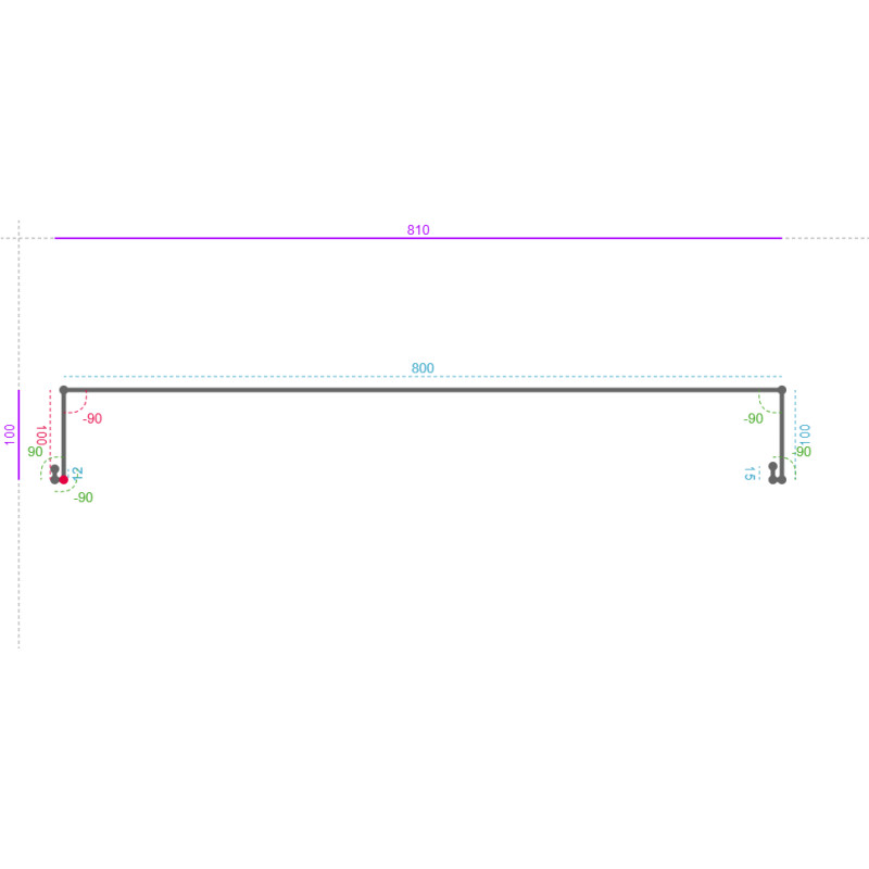 90 ° 50 mm 800 mm Devant 0 mm