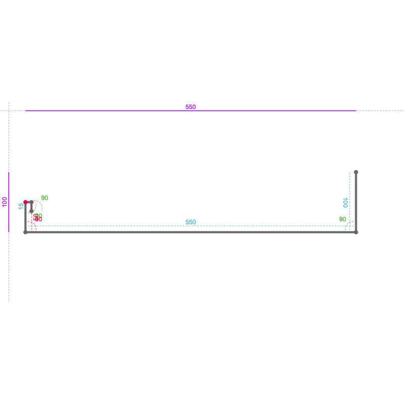 90 ° 100 mm 550 mm Derrière 0 mm